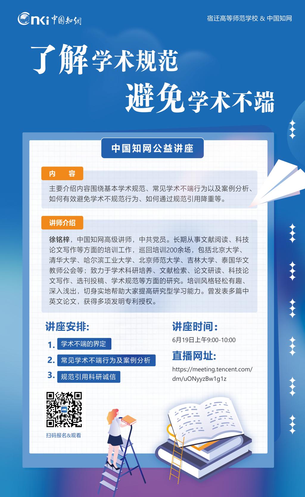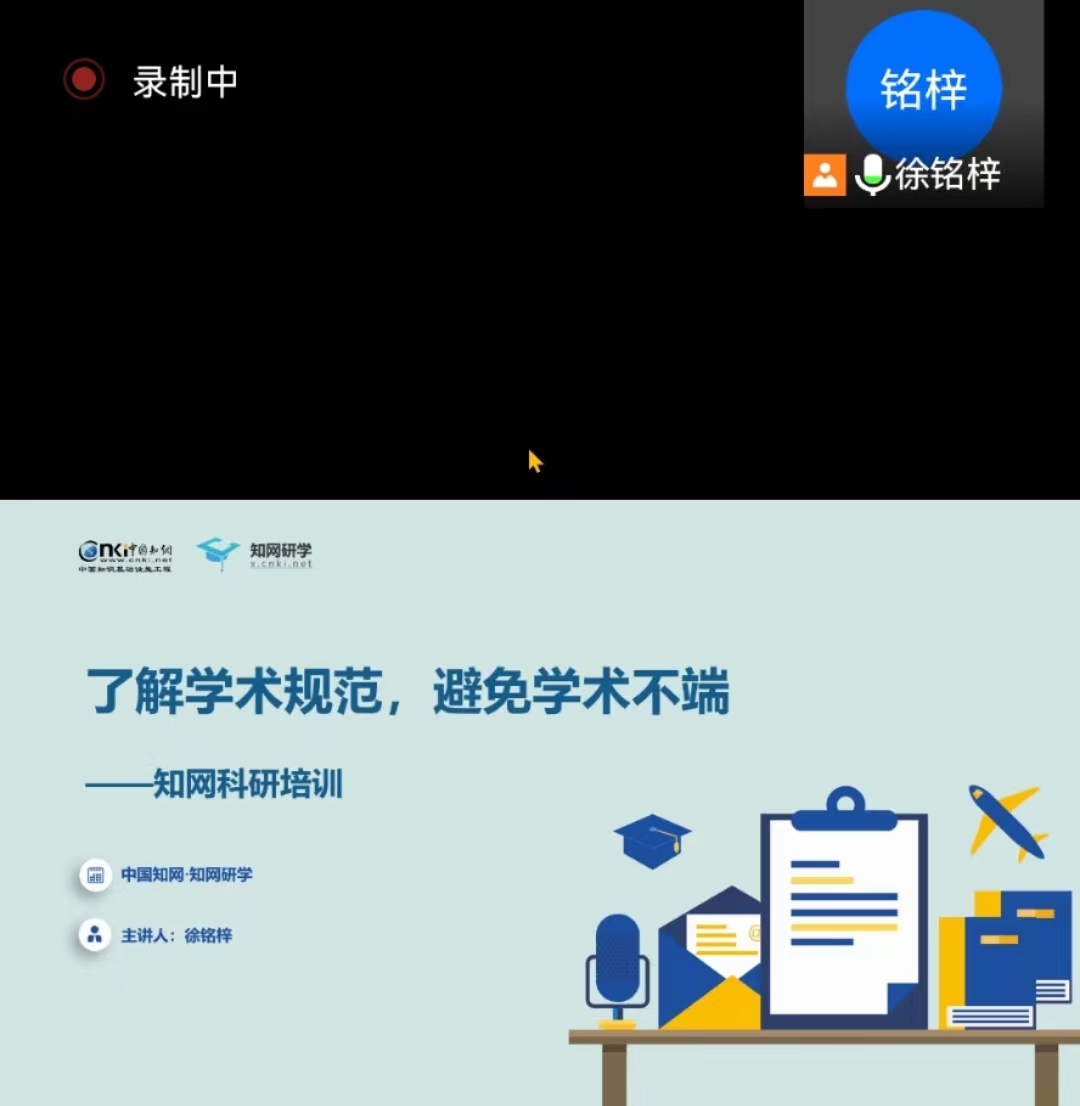 2022年6月19日上午,科研中心邀请中国知网高级讲师徐铭梓老师为我校教学人员开设学术规范建设公益视频讲座,我校近100名教学人员观看了讲座,中国知网江苏分公司区域经理陈云新老师主持讲座。