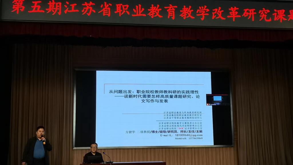 会上,江苏省教育科学研究院职教所副所长陈向阳解读了《江苏省职业教育教学改革研究课题管理办法》,江苏省职业教育与终身教育研究所所长、研究员方健华作了《从问题出发:职业院校教师教科研的实践理性----谈新时代需要怎样高质量课题研究、论文写作与发表》的专题讲座。会议交流了省职教教改课题研究与管理经验,分地点进行了第五期职教教改重点课题现场集中开题论证,特邀专家进行了点评。会议还对第五期省职教教改课题管理工作进行了部署。