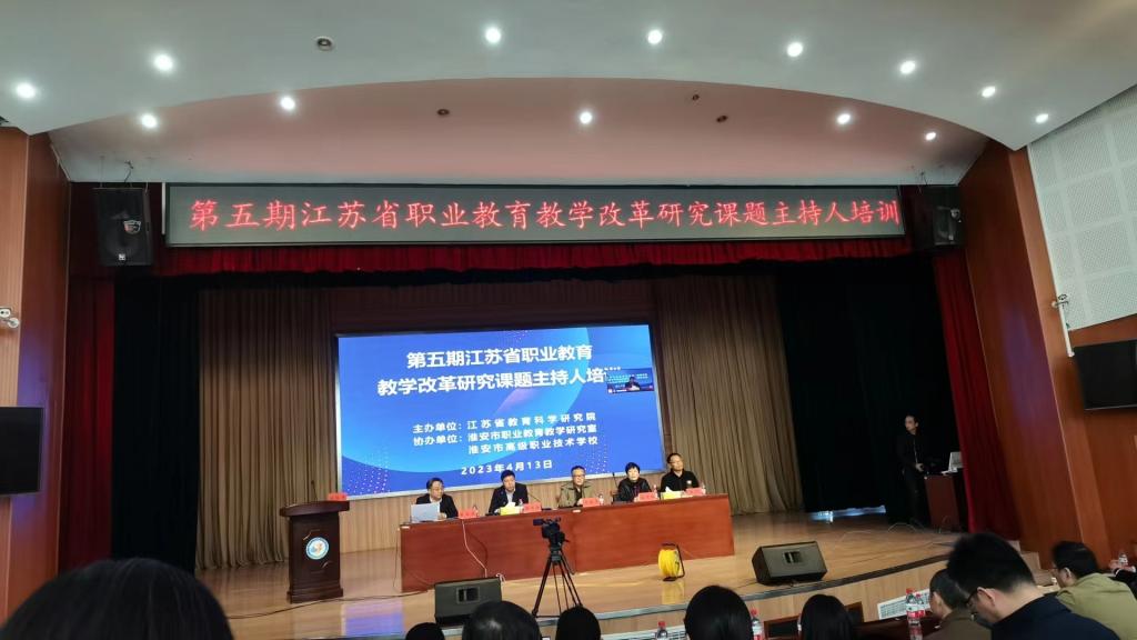 第五期江苏省职业教育教学改革研究课题主持人集中培训暨重点课题开题论证会,于2023年4月13日至14日在淮安市维也纳国际酒店举行。参加对象为连云港、淮安、盐城、宿迁四市第五期省职教教改课题主持人及核心成员、职教教科研机构负责人、部分学校职教教改课题管理部门负责人。我校立项的重点(自筹)课题主持人李先栓及其核心成员李松涛参加了培训活动。