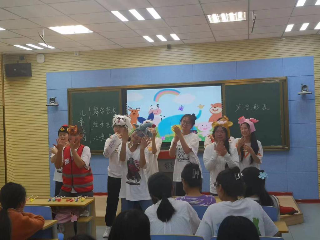 王老师的授课题目是《儿童戏剧创编与表演》,授课对象是学前教育专业2020级(1)班学生。本节课的教学目的与要求是:了解儿童戏剧的价值及其在幼儿园教育的意义,树立高远职业理想;小组合作进行儿童剧创编表演实践,师生点评,提高声、台、行、表综合素养;儿童戏剧融合性学习,激发学生热爱儿童戏剧和戏剧教育的情感。王老师通过激趣导入的方式,让学生感受儿童戏剧的魅力,引发学生的表演欲。然后引领学生了解儿童剧的基本特征及儿童戏剧教育的意义。接着观看中外儿童戏剧教育现状视频,激发学生热爱儿童戏剧教育。王老师采用小组合作形式,分别进行了表情训练、动作表情训练、声音动作训练、模拟人物训练等。最后组织学生进行了小组儿童剧表演,引导学生主动探究戏剧改编的方法及表演戏剧的细节,培养她们主动学习和合作学习的精神。王老师本节课运用的是对分课堂、体验式教学、融合性教学等教学方法,把课堂充分地交给学生,全面培养学生的创编与表演能力。
