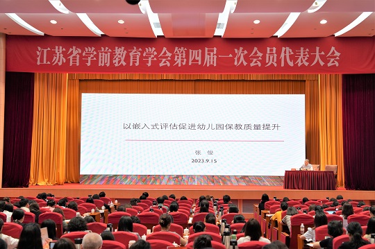 2023年9月15日,江苏省学前教育学会第四届一次会员代表大会在南京召开。省教育厅副厅长顾月华同志出席会议并讲话,省教育学会会长朱卫国同志到会致辞,全省各地的学前教育学会会员代表和相关理事单位成员共计400多人参加了会议。韩勇校长作为理事单位主要负责人应邀参加了会议。