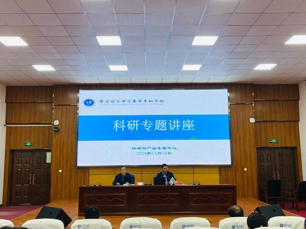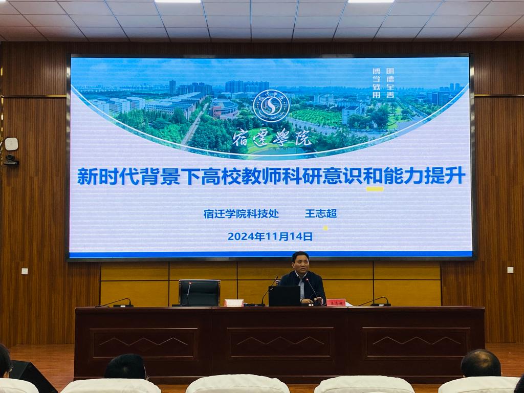 11月14日下午,我校举行了以“新时代背景下高校教师科研意识和能力提升”为主题的科研讲座。邀请了宿迁学院科技处副处长王志超教授讲学。全体教学人员聆听了讲座。讲座由科研与产业发展中心负责人何胜刚主持。