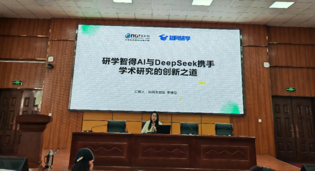 李晓慧老师培训的题目为:研学智得AI与DeepSeek携手学术研究的创新之道。在近两个小时的时间里李老师围绕如何在信息时代实现资源的精准获取与整合,如何突破数字阅读壁垒实现提质增效,如何高效利用已有素材夯实个人研究基础三个方面,详细讲解了中国知网网络平台中研学智得AI与DeepSeek结合运用的技术与方法,并结合讲解进行了精准的示范。
