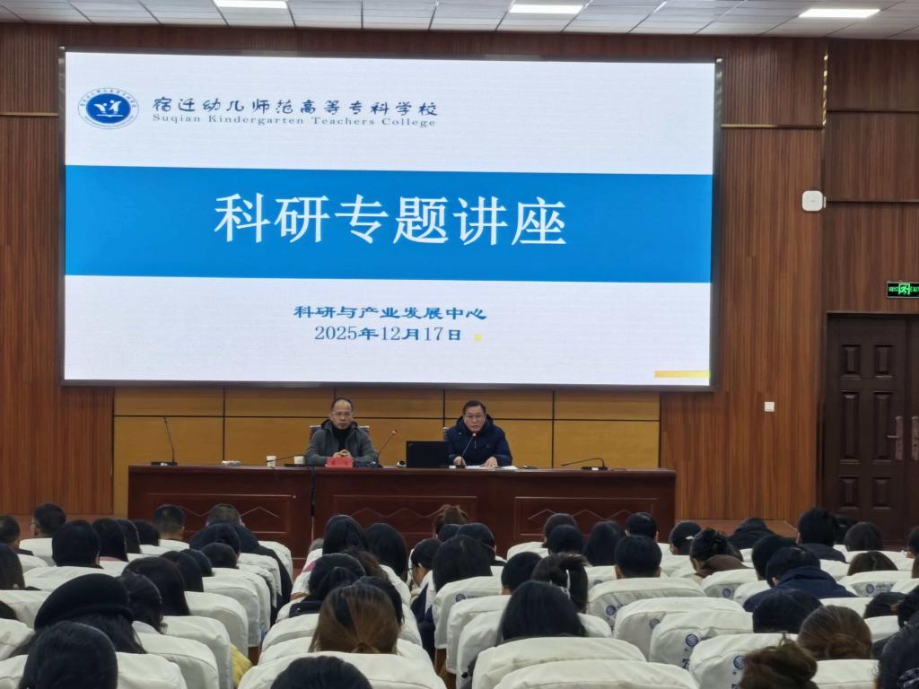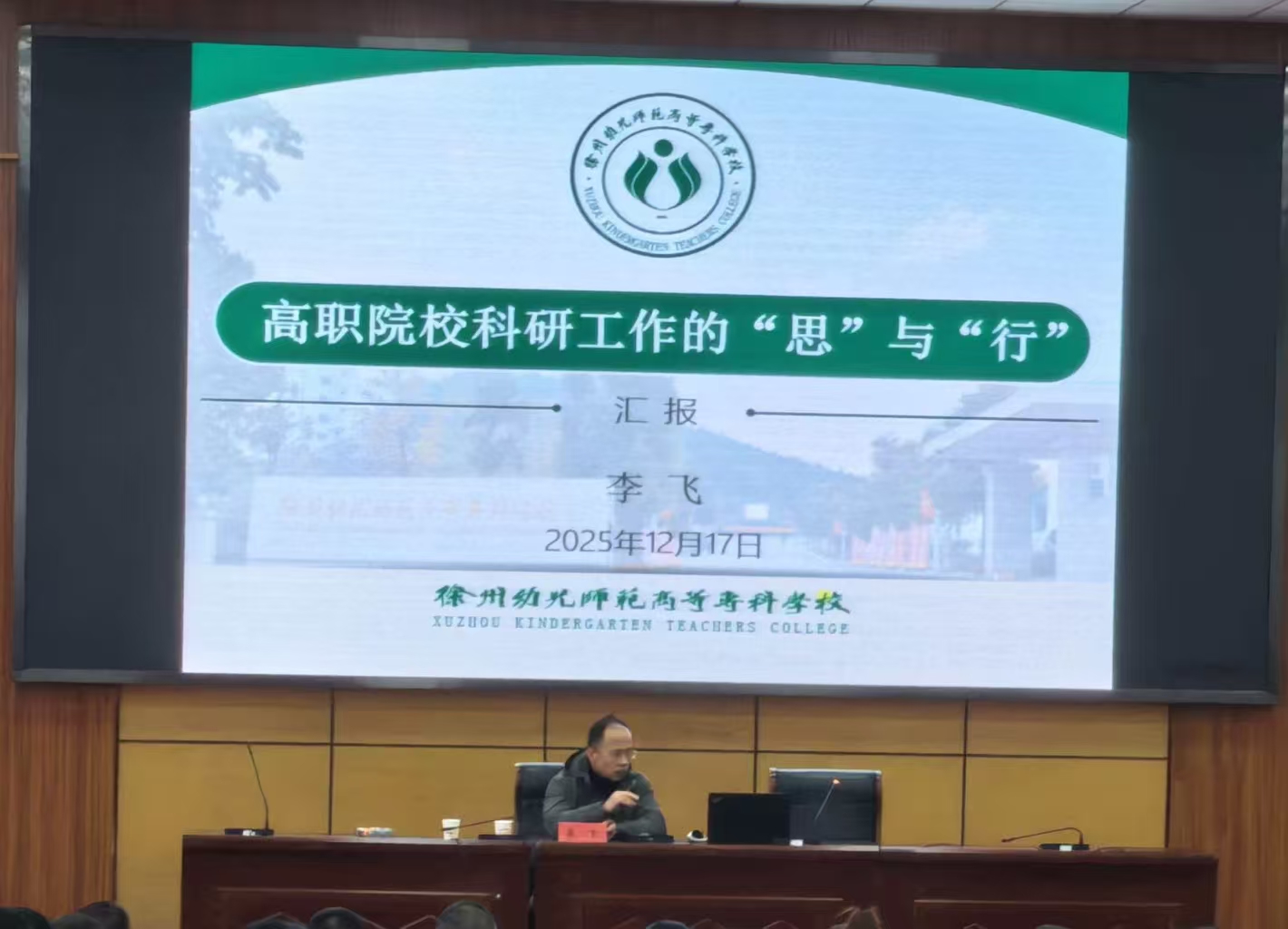 12月17日下午,徐州幼儿师范高等专科学校科研处处长李飞教授应邀来我校讲学,讲学的主题为:高职院校科研工作的“思”与“行”。全体教学人员聆听了讲座。讲座由科研与产业发展中心负责人何胜刚主持。