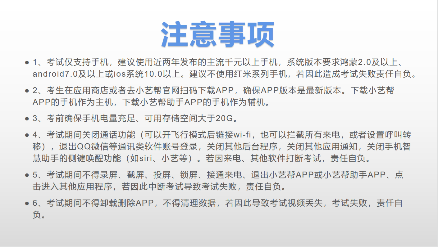 请仔细阅读高职提前招生五校联考小艺帮操作指南和注意事项。请提前安装好小艺帮APP和小艺帮助手APP,提前熟悉操作方法,认真备考,规范操作。