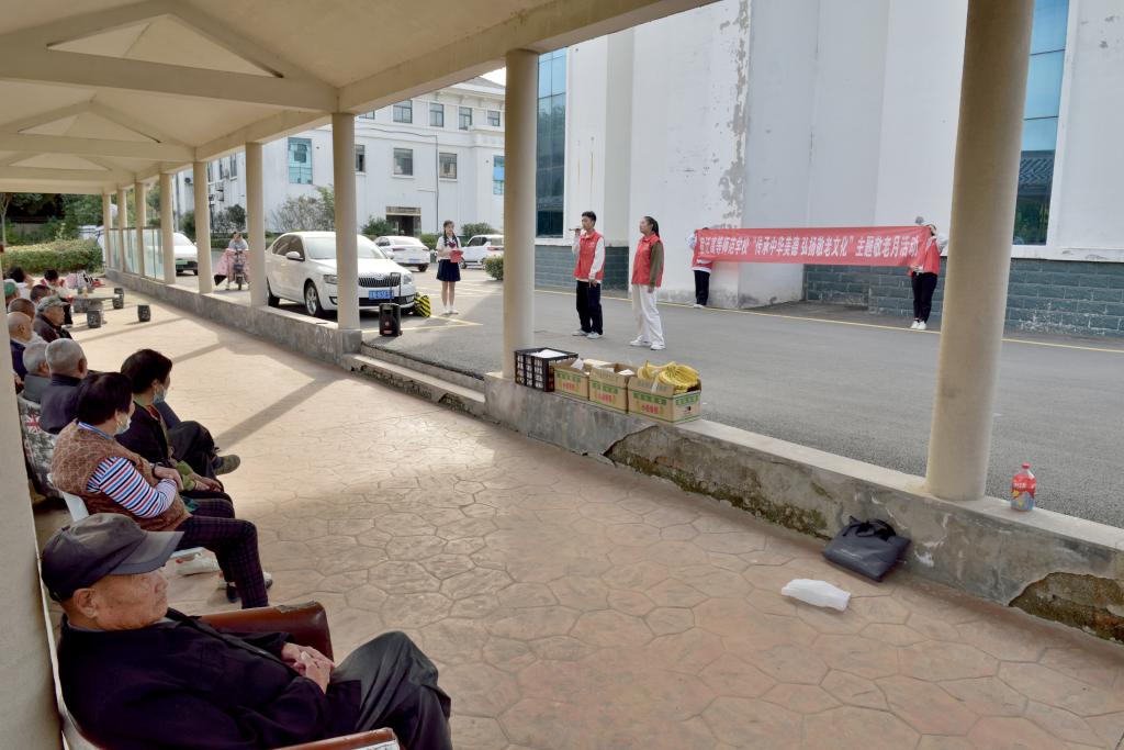 今年农历九月九日,为传统的重阳节,也是我国第十一个老人节,为深入开展习近平新时代中国特色社会主义思想主题教育,传承敬老、爱老、助老的中华美德,进一步倡导敬老、爱老、助老的新风尚,10月27日宿迁高师青工党支部和团委组织部分党员、学生入党积极分子、优秀团员等30余名志愿者,到宿豫区晓店敬老院开展“传承中华美德 弘扬敬老文化”主题党日活动。