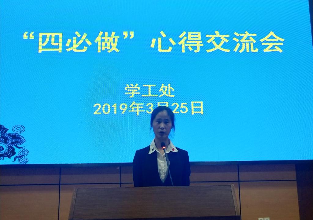 为了巩固“四必做”的成果,发挥先进典型的辐射作用,指导学生更高质量的进行晚作自省,3月25日下午,我校学工处在二号楼报告厅举行“四必做”心得交流会活动。