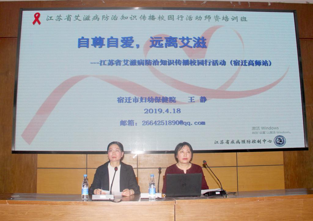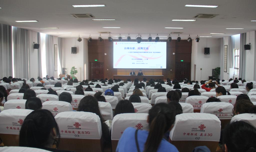 2019年4月18日下午,我校学工处在二号楼学术报告厅举行了一场题目为《自尊自爱,远离艾滋》的讲座。本次讲座由宿迁市妇幼保健院副院长王静主讲,学工处处长王晓艳主持,全体14级学生聆听了讲座。