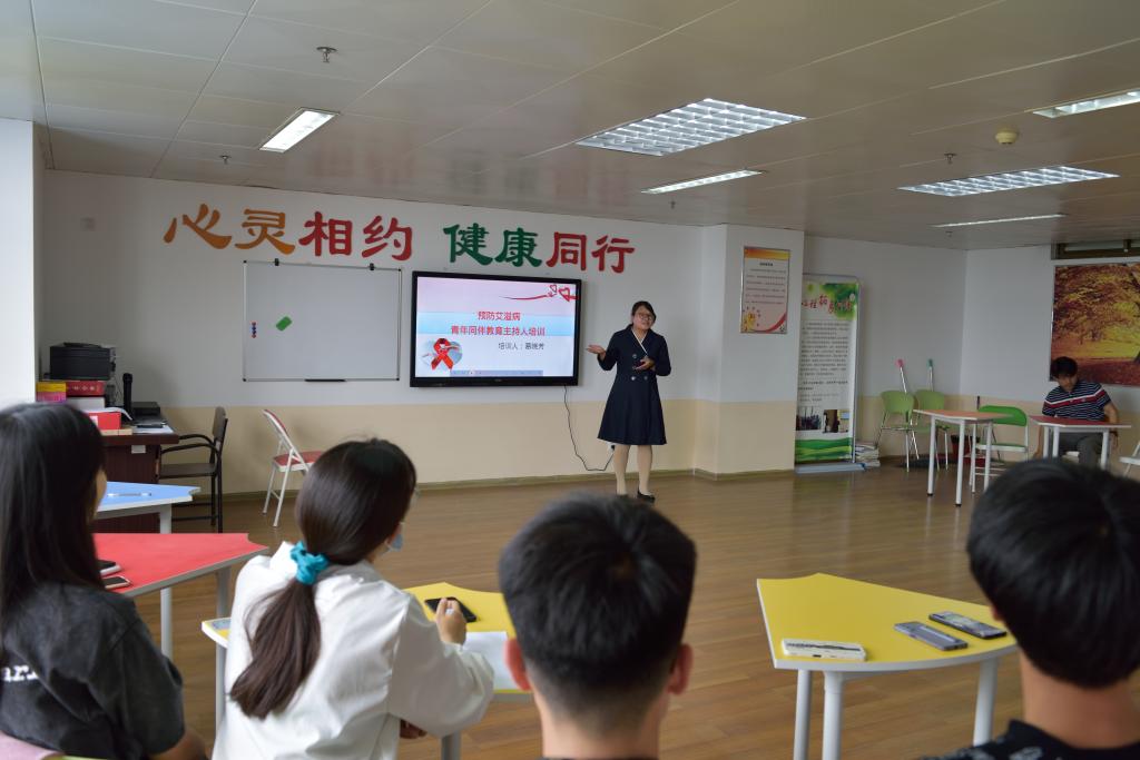 葛晓芳老师对校学生会学干进行同伴教育主持人培训。培养同伴教育主持人,不仅可以普及艾滋病相关知识,提高青年学生防艾意识;而且可以培养更多优秀的青春健康志愿者,为防艾、控艾贡献力量。