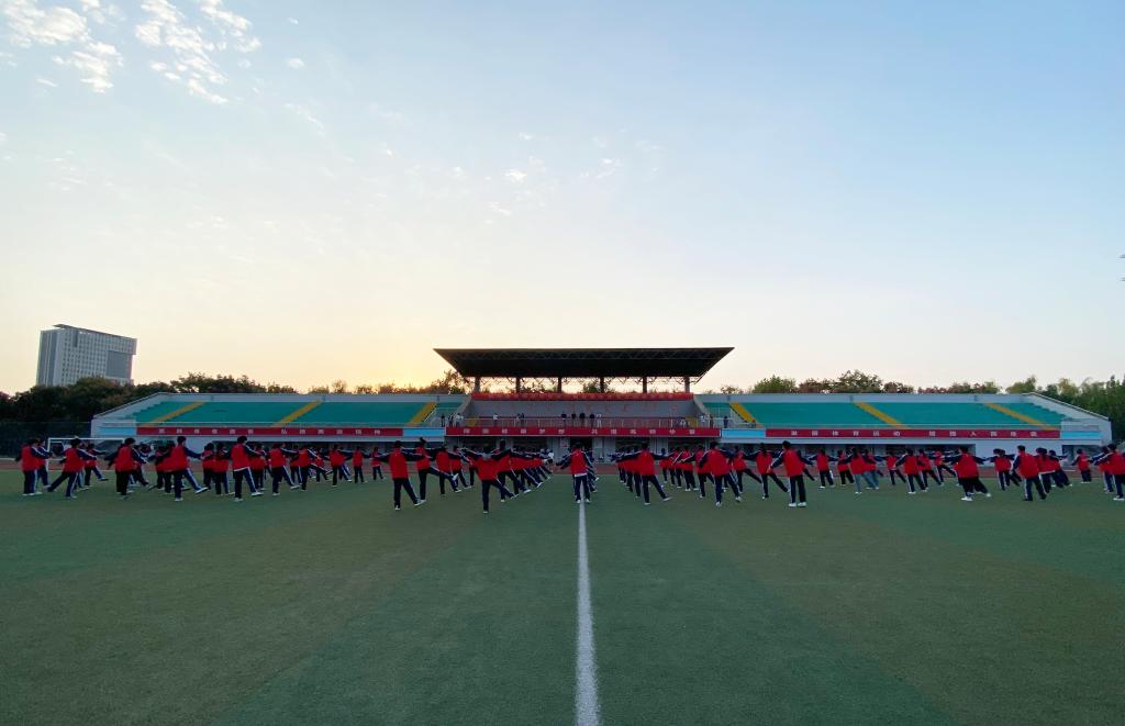 为丰富校园文化生活,提高学生们的身体素质,培养学生集体主义观念,展现同学们积极进取、奋发向上的精神风貌,促进学生德智体美劳全面发展,10月30日下午,我校在运动场隆重举行第六届健康体育节之2023 级新生广播操比赛。担任本次比赛的评委是学工处处长马卫东、体育系负责人仲启丰、体育组袁振勇、钱晓年、刘璐等五位老师。