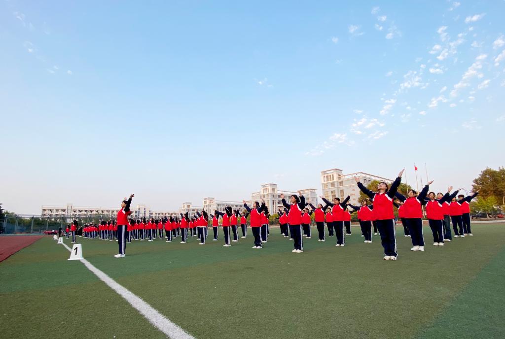 比赛中,各参赛班级身着统一的服装,动作规范整齐,井然有序。同学们个个热情高涨,精神饱满,充满朝气和活力,随着律动展现出了积极进取、乐观向上的风貌。弯腰、踢腿、跳跃、转体……同学们伴随节奏,动作轻盈而洒脱,刚健而有力,规范整齐的动作和团结协作的精神更是赢得了评委老师的一致好评。