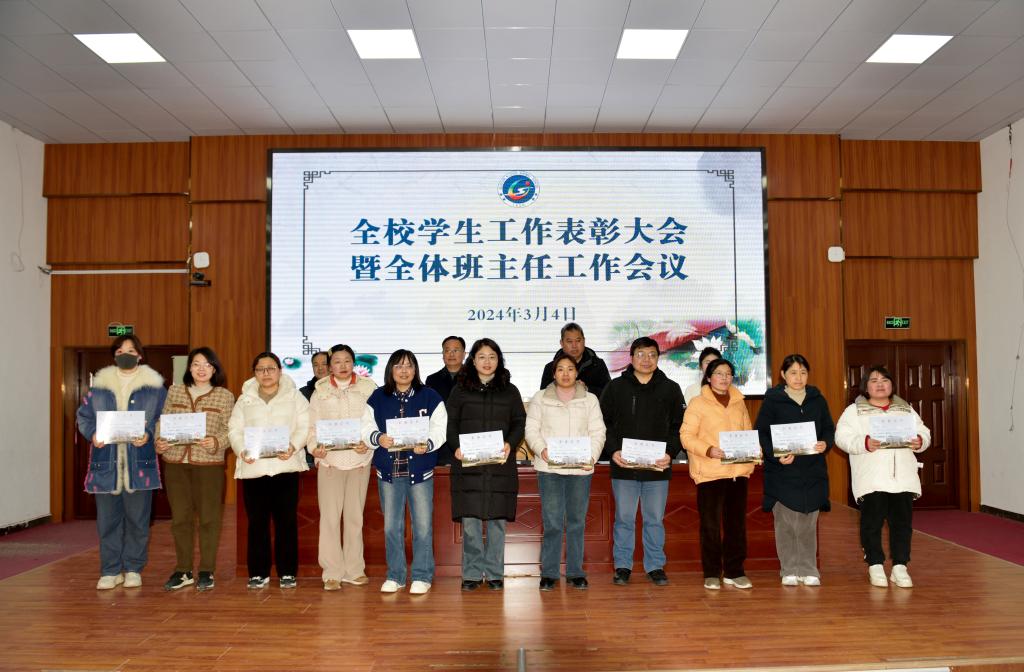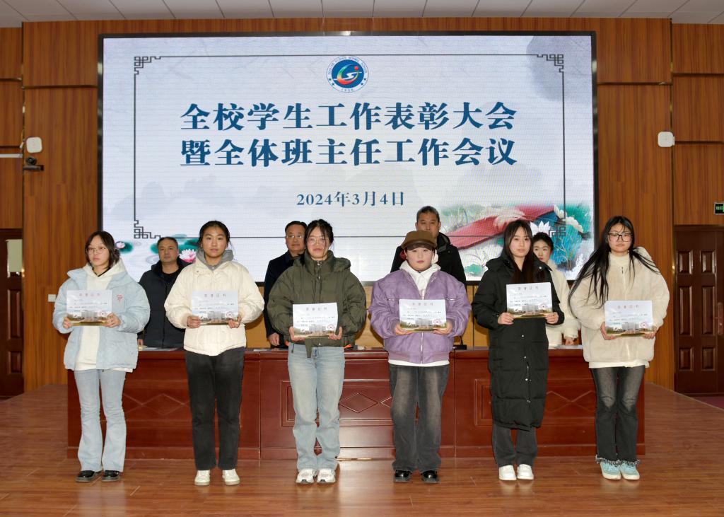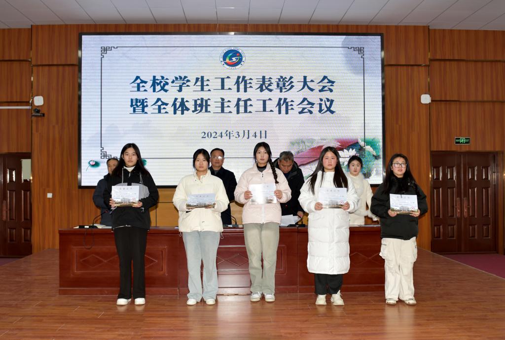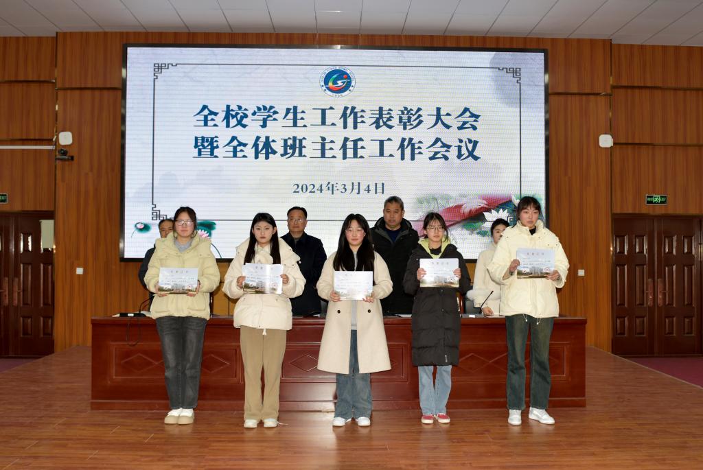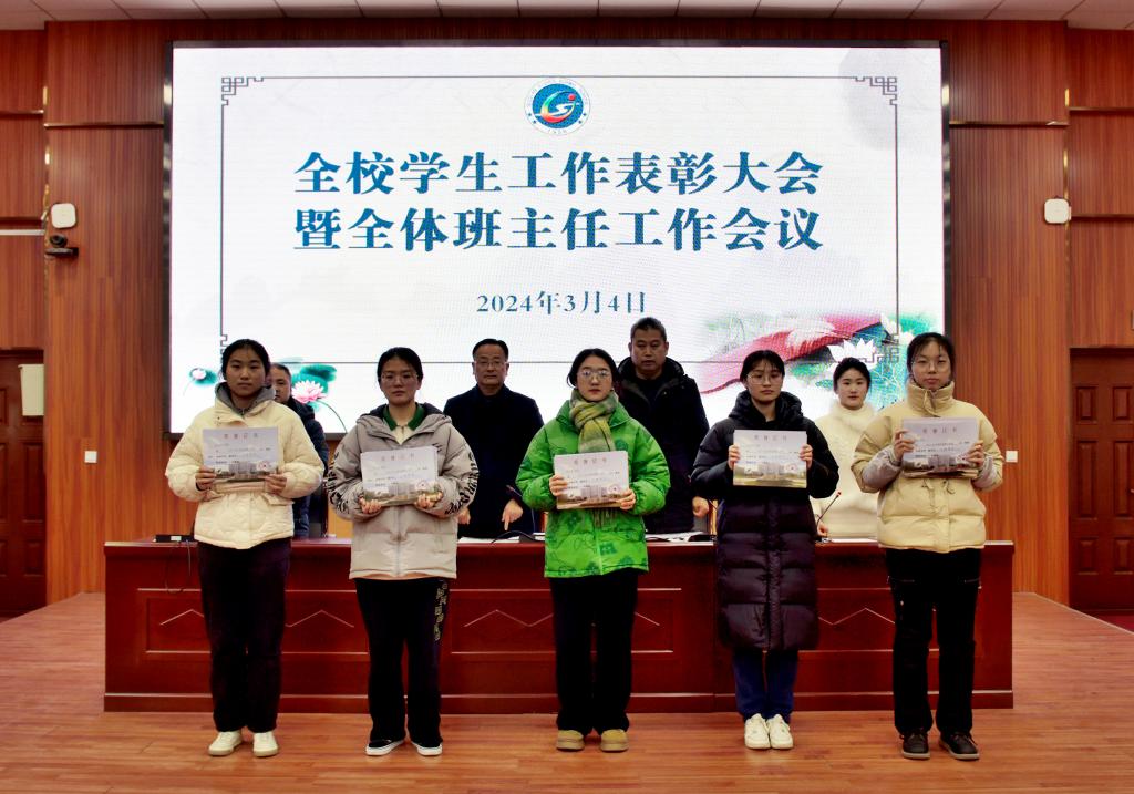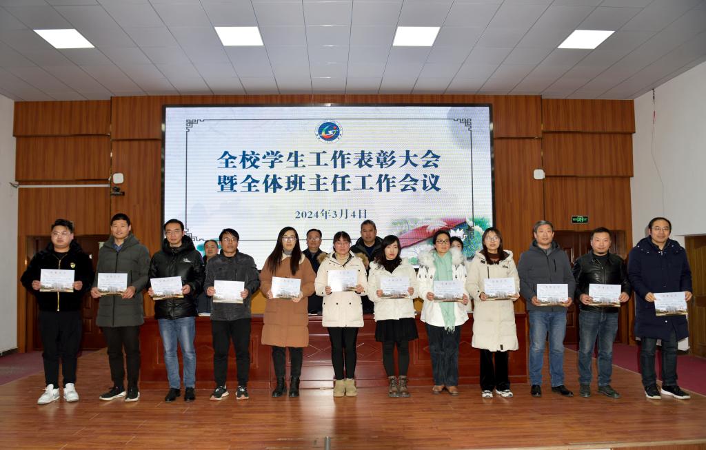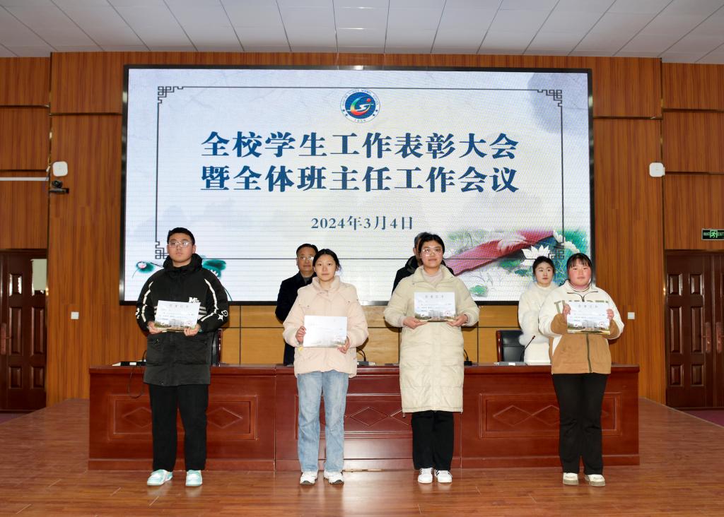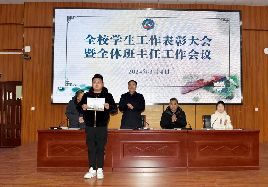 学生工作处副处长葛鹏宣读了《关于对2023-2024学年度第一学期先进班集体、先进团支部和先进个人予以表彰的决定》文件,团委负责人张阳妹宣读了《关于表彰2024年寒假社会实践“优秀组织”“先进个人”的决定》文件,大会为2023-2024学年度第一学期“优秀班主任”“先进班集体”“先进团支部”“三好学生”“优秀学干”“优秀团干”“优秀团员”,以及2024年寒假社会实践“先进个人”和“优秀组织”进行了颁奖。