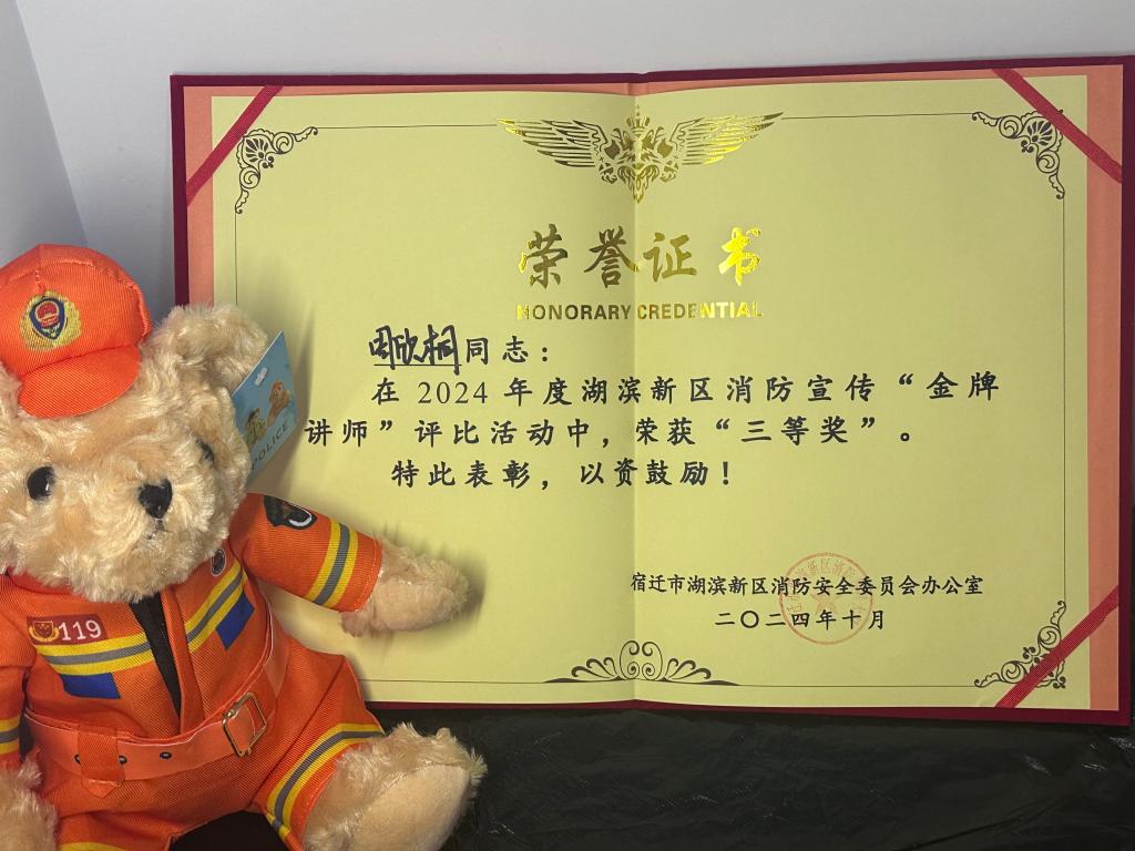 近日,宿迁市湖滨新区消防安全委员会“金牌讲师”比赛圆满落下帷幕。在这场高手云集的赛事中,我校的周欣桐同学表现优异,为学校争得了荣誉。