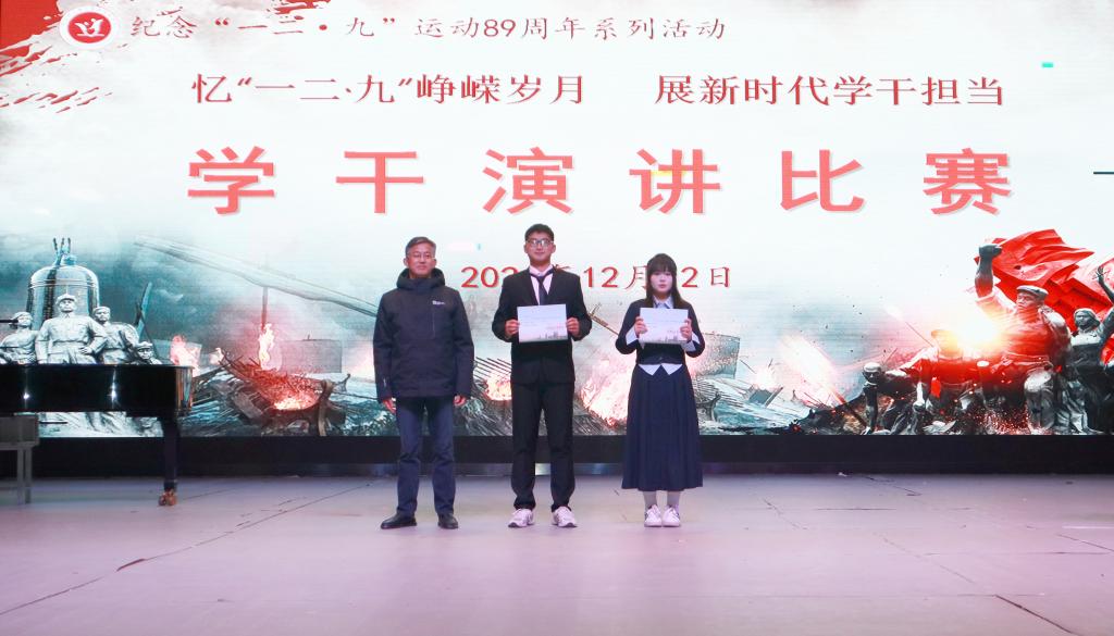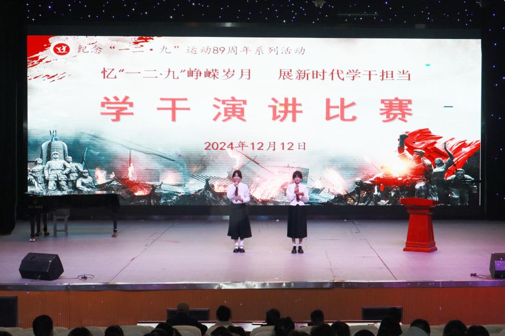 12月12日,我校在大礼堂隆重举行纪念“一二·九”运动89周年系列活动之“忆一二·九峥嵘岁月 展新时代学干担当”学干演讲比赛,于激昂话语间回溯峥嵘历史、共话当下责任担当。