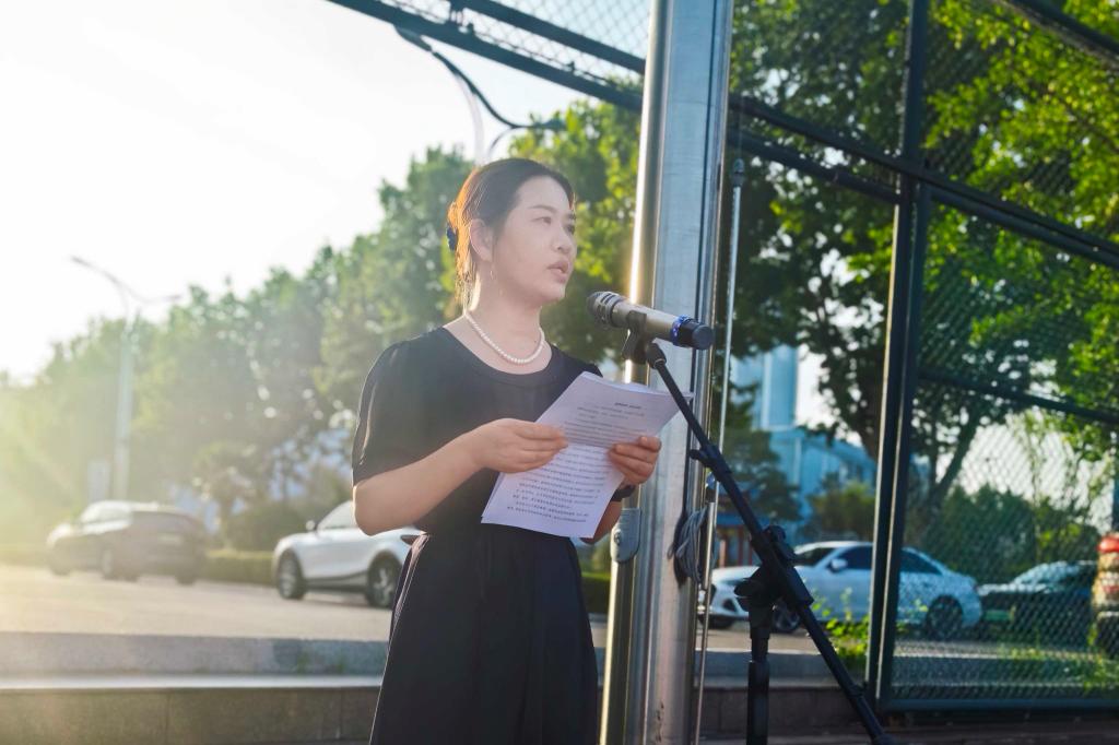 升旗仪式后,校党委委员高凯发表国旗下讲话。她首先代表学校向全体师生致以新学期的诚挚问候与热烈欢迎,回顾了学校过去一学年在人才培养、教学科研、校园建设等方面取得的成绩,勉励全体师生在新的学年里接续奋斗、再创佳绩。