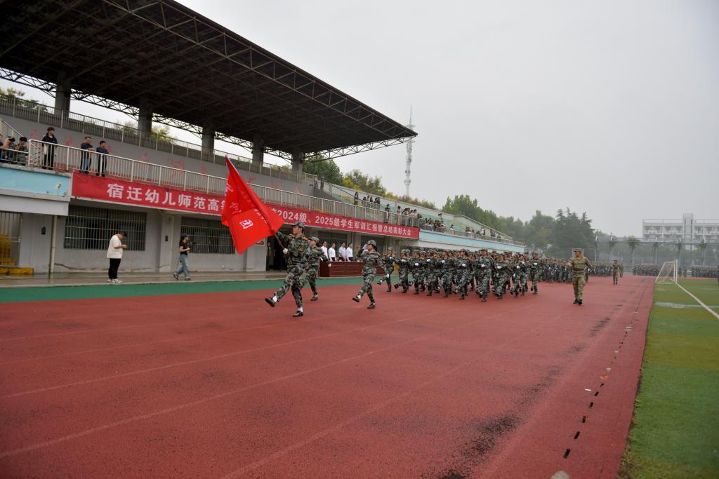 随着主持人高凯委员宣布“宿迁幼儿师范高等专科2024级、2025级学生军训汇报暨总结表彰大会圆满结束”,各班学生在教官与辅导员的带领下有序退场。