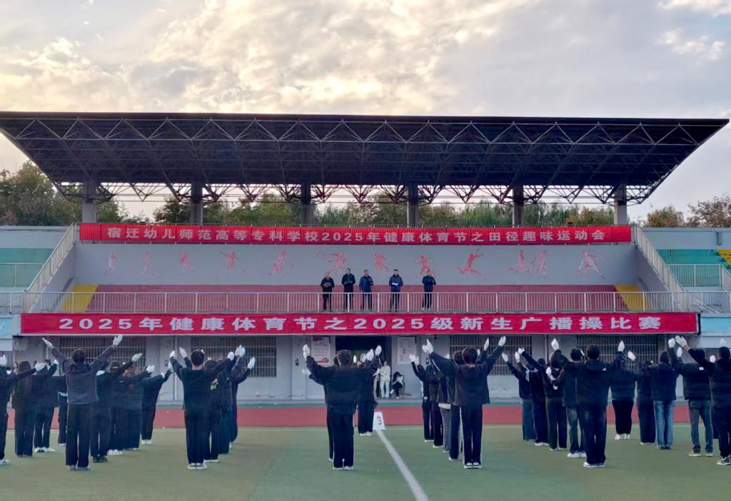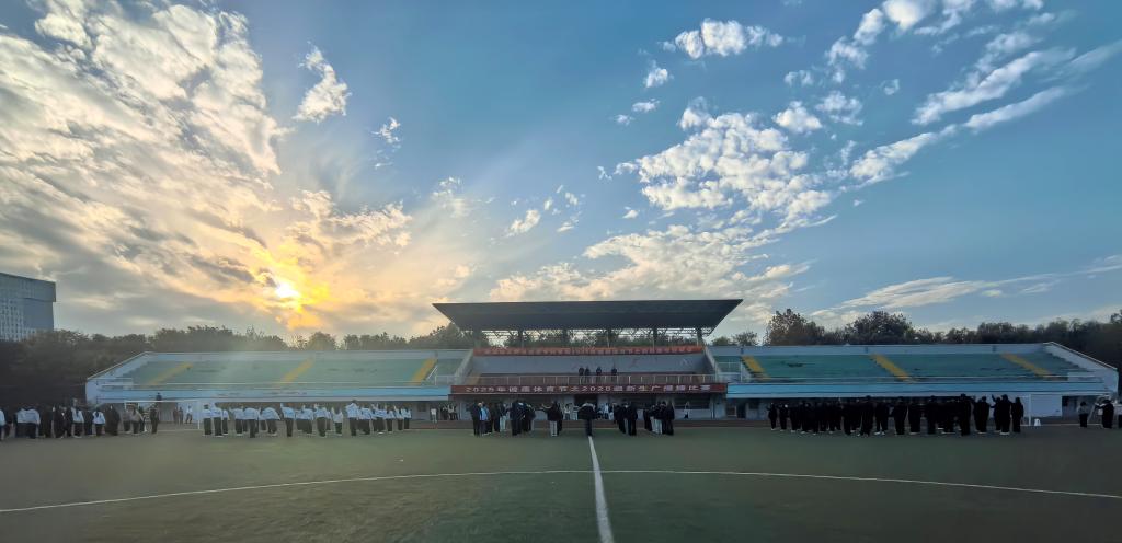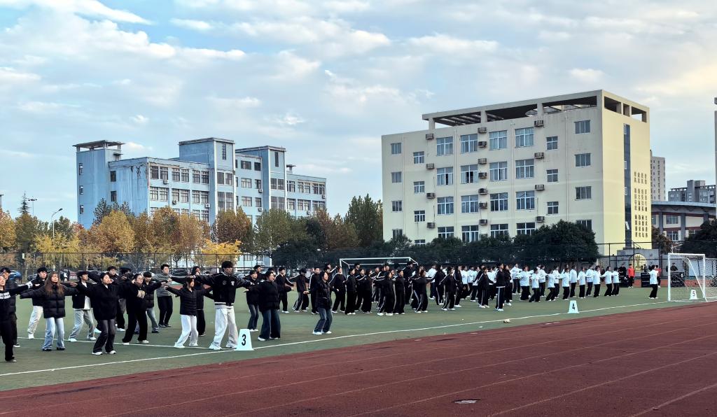 为丰富校园文化生活,增强新生身体素质,展现当代大学生积极向上的精神风貌,11月10日下午,我校2025年健康体育节之新生广播操比赛顺利举办。本次比赛特邀周德刚、袁振勇、万开成、毛晓伟、葛鹏五位老师担任评委,各学院新生班级踊跃参与,以饱满的热情为现场观众呈现了一场活力四射的体育盛宴。
